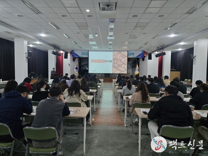 교육은 한국지방재정공제회 소속 전문강사(전문관 신희승)를 초빙해 2시간 동안 진행됐으며, 공유재산 관련 법령 해설, 공유재산 관리계획, 사용허가 및 대부 절차, 공유재산 실태조사 등 사례 중심으로 실무에 즉시 적용 가능한 내용으로 구성됐다.