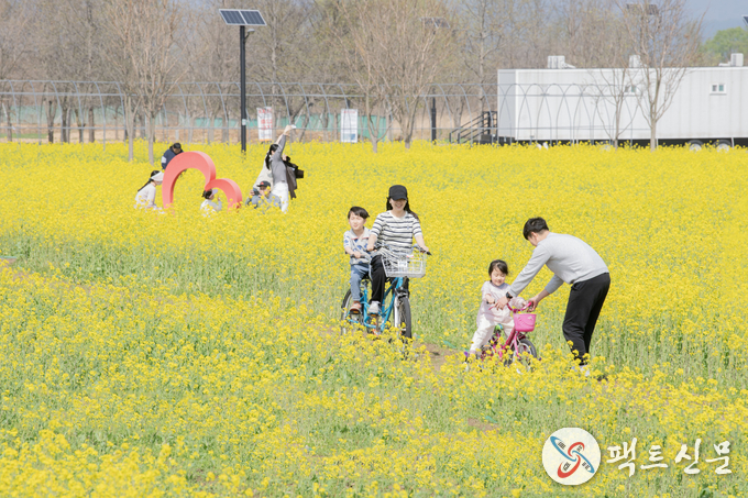 방문객들은 넓게 펼쳐진 산책로를 따라 걸으며 유채꽃을 감상하거나 자전거를 타고 공원 곳곳을 둘러보며 봄의 정취를 만끽할 수 있다. 곳곳에 마련된 포토존에서는 소중한 추억도 남길 수 있다.