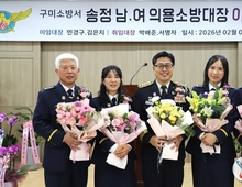 [팩트신문 = 이상혁 기자] 구미소방서는 2월 3일(화) 오전 10시 30분, 구미시 자원봉사센터에서 송정남·여성의용소방대장 이·취임식을 개최했다. 이번 행사는 그동안 지역 안전을 위해 헌신해 온 이임 대장의 노고를 기리고, 새롭게 의용소방대를 이끌어갈 신임 대장의 취임을 축하하기 위해 마련됐다. 조유현 구미소방서장과 박교상 구미시의장, 다수의 시·도의원 및 의용소방대원 등이 참석해 자리를 빛냈다. 이임한 민경구, 김은지 대장은 재난 현장과 각종 소방 활동에서 남다른 사명감과 봉사 정신으로 지역사회 안전 확보에 기여한 공로를 인정받아 공로패 등을 수상했다. 새롭게 취임하는 박배준, 서명자 대장은 다년간의 의용소방대 활동과 꾸준한 사회봉사를 통해 대원들로부터 두터운 신망과 신뢰를 얻어왔으며, 앞으로 각종 재난 대응과 소방활동에 적극 참여하여 지역사회 안전에 이바지 할 예정이다. 조유현 구미소방서장은“의용소방대는 각종 재난 현장과 지역 주요 행사에서 시민의 생명과 안전을 책임져 온 든든한 버팀목”이라며 앞으로도 변함없는 역할 수행을 당부했다.