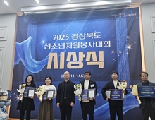 [팩트신문 = 이상혁 기자] 구미시립봉곡도서관이 '2025 경상북도청소년자원봉사대회' 활동터전 부문에서 경상북도지사 표창(우수터전)을 수상했다고 밝혔다. 이번 수상은 청소년 자원봉사 활성화와 지역사회 참여 확대에 기여한 공로를 인정받은 결과다. 경상북도는 도내 청소년 자원봉사 활동터전 중 활동 실적이 우수하고 모범이 되는 기관에 표창을 수여하고 있다. 구미시립봉곡도서관은 2024년 10월부터 2025년 8월까지 11개월간 중학생 16명, 고등학생 18명, 대학생 44명, 일반인 14명 등 총 92명이 참여해 1,019시간의 자원봉사 활동을 기록하며 도내 활동터전 중 상위 등급으로 선정됐다. 이재웅 구미도시공사 사장은 "이번 수상은 지역 청소년들과 자원봉사자들의 꾸준한 참여와 헌신 덕분"이라며 "앞으로도 청소년들이 자원봉사를 통해 주체적으로 성장하고 지역사회와 함께 발전할 수 있는 환경을 조성하겠다"고 전했다.