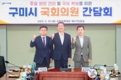 [팩트신문 = 이상혁 기자] 구미시는 9월 30일 국회를 방문해 구자근, 강명구 지역구 국회의원과 간담회를 열고 지역 주요 현안과 국비 확보 전략을 논의했다. 이날 간담회에는 김장호 시장을 비롯해 구미시 주요 간부 공무원 등 30여 명이 참석했다. 시는 현안 사업 추진 상황과 정부 예산 동향을 공유하며 국회 차원의 전략적 지원 방안을 모색했다. 주요 현안사업으로는 △구미국가산업단지 1~3단지 연결교량 신설 △구미~신공항 철도건설 △대한민국역사박물관(구미산업화역사관) 건립 △새마을운동중앙회 및 연수원 유치 △「5극 3특」국가균형성장 전략 대응 △한국은행 구미지역본부 유치 △「방위산업 소재ㆍ부품ㆍ장비 특화단지」유치 △국가 푸드테크 클러스터 조성 등이 논의됐다. 주요 국비사업으로 △구미시 제조창업 인큐베이팅 센터 구축 △AX 실증산단 구축 사업 △지역 주력 중소기업형 인공지능 데이터 스페이스 구축 △차세대 디스플레이 핵심부품ㆍ소재 기술개발 △반도체 장비 챔버용 소재부품 제조 및 검증 테스트베드 구축 △수요확대형 배터리 테스트베드 구축 △구미 산동 국민체육센터 조성 △푸드테크 연구지원센터 구축 △펫테크 산업화 지원센터 구축 △4단지처리구역 외 2개소 노후하수관로 정