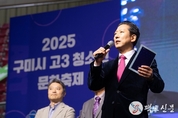 [팩트신문 = 이상혁 기자] 구미시는 11월 19일 박정희체육관에서 「2025년 구미시 고3 청소년 문화축제」를 열었다. 이번 축제는 수능을 마친 고3 청소년들이 대학 진학과 사회 진출을 앞두고 새로운 출발의 희망을 다질 수 있도록 마련된 행사로, 관내 11개 고등학교에서 2,500여 명의 학생이 참여했다. 행사에서는 참가 학교별 학생 대표가 그동안 지도해준 선생님에게 감사 인사를 전하는 시간을 비롯해 청소년 동아리 장기자랑과 대학 동아리 축하공연 등 다채로운 프로그램이 이어졌다. 특히 올해 메인 무대에는 호소력 짙은 목소리로 큰 사랑을 받고 있는 가수 황가람이 출연해 진심 어린 희망 메시지와 축하공연을 선보였다. 황가람은 자신의 삶과 경험을 바탕으로 꿈을 향해 나아가는 청소년들에게 진솔한 응원의 말을 전해 깊은 공감을 이끌었다. 또한 여러 대학 축제를 진행하며 청소년들과의 소통으로 잘 알려진 인기 MC 섭이가 사회를 맡아 현장의 열기를 더욱 높였다. 이와 함께 구미대학교, 금오공과대학교, 경운대학교, 한국폴리텍대학 구미캠퍼스 등 지역 대학이 참여한 체험부스도 운영됐다. 직업·학과 기반의 진로 탐색 프로그램과 기술·직업 교육 중심의 직무 체험 프로그램을 통해
